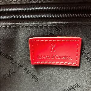ROBERTA DI CAMERINO VTG Patent Leather Handbag Black Red Unique Boho Retro Rare