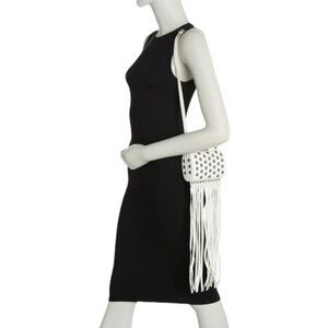 ROBERTO CAVALLI Leather Grommet Fringe Crossbody Bag