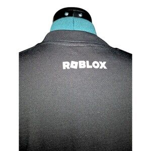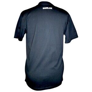 A black cotton shirt with a graphic print featuring the Roblox logo. This short sleeve t-shirt has a crew neck and is suitable for all seasons. Representing the gaming and developer themes of the conference, this regular fit shirt is perfect for fans of Roblox looking to add a unique and exclusive piece to their wardrobe. Brand new, clean condition. Please see photos for measurements.