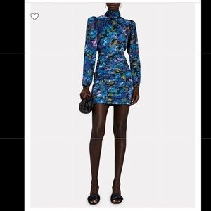 Ronny Kobo gives '80's florals and puffed sleeves a micro mini update with their Annika. Tailored along a high neckline, the label drapes their night out-ready dress in a satin finished silk-blend. Back keyhole button and zip closures.