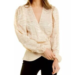 RONNY KOBO Zebra Jacquard Silk Wrap Top Blouse Ivory NEW