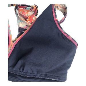 ROXY Fitness Sports Bra Bikini Top Floral Navy Size S 2579