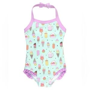 RUFFLE BUTTS Ice Cream Popsicle Float Mint Green Purple Swimsuit Size 6-12M