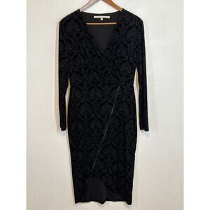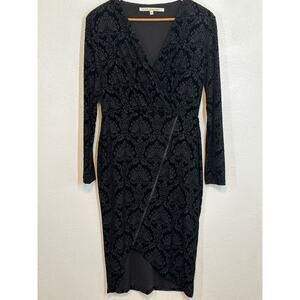 Rachel Roy Dress L Black Velvet Burnout Faux Wrap Asymmetrical Zip High Low Hem