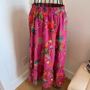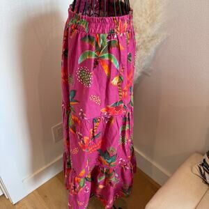 Rachel Roy Pink Floral Tropical Linen Blend Tiered Maxi Skirt Medium