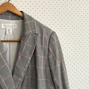 Rachel Zoe Houndstooth Blazer S Black Burgundy Jacket Academia Double Breasted