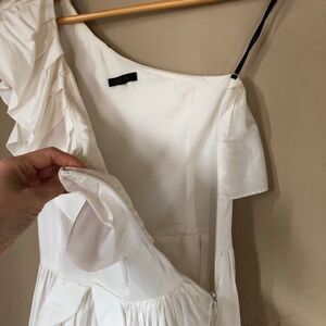 Rachel Zoe White One Shoulder Bold Statement Ruffle Neckline Mini Dress