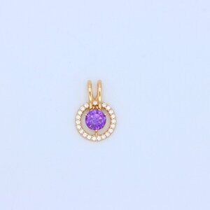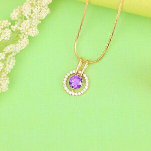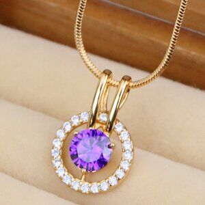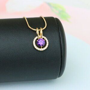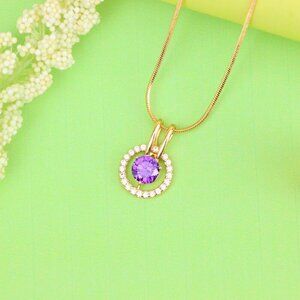 "Radiant Purple Halo Pendant in Gold Plated Brass with Crystal Ring, XPPT1711 Vibrant purple center stone framed by sparkling accents for timeless style. ✔️ Gold plated over high-quality brass ✔️ Eye-catching purple gemstone centerpiece ✔️ Surrounded by a halo of dazzling white crystals ✔️ Size approx. 0.47 x 0.71 inches (1.2 x 1.8 cm) ✔️ Elegant double bail design for extra security ✔️ Ideal for gifting or enhancing your everyday elegance"