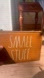 Chic and functional Rae Dunn wristlet pouch in warm tan pebbled faux leather with signature minimalist text “SMALL STUFF.” embossed in white across the front.