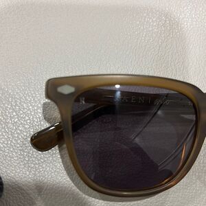 Stylish Unisex Raen sunglasses in Kelp (smoke) color with a sleek design. Comes with a gray and brown case.