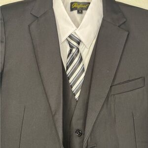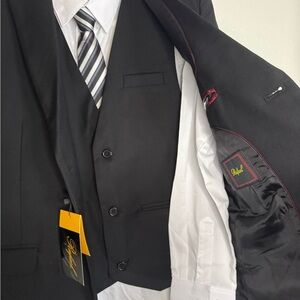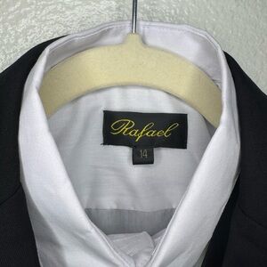 Rafael 2 Button Black Suit Blazer Sports Coat in good condition includes white shirt. Tie, Vest And Blazer Size 14 .