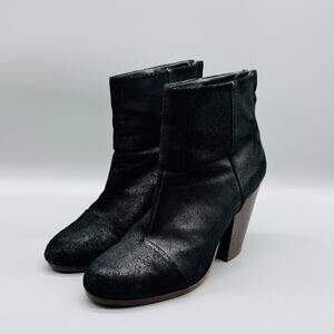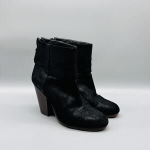 Rag & Bone Boots Womens 8 Black Leather Ankle Newbury Block Heel Back Zip Bootie