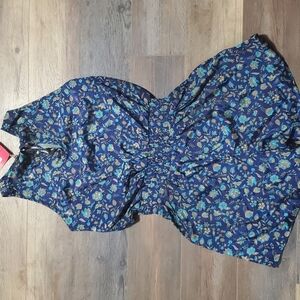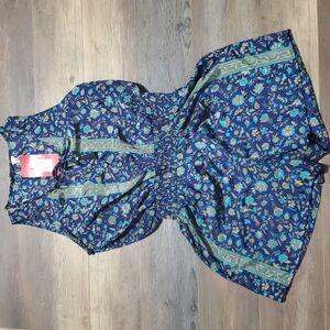 blue and greens floral patterned jumper one piece lightweight perfect for summer satin feel. New with tags by Raga size xs