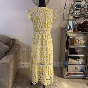 Embrace elegance with the Yellow Floral Print Midi Dress. Perfect for any occasion, this dress features a delicate floral pattern that adds a touch of charm.