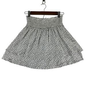 Rails Addison Mini Skirt White/Blue Floral SZ XS Elastic Smocked Waist