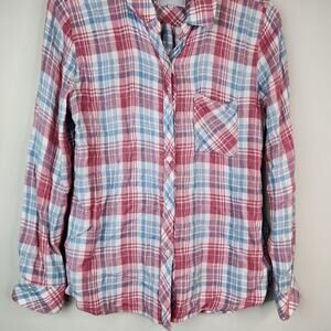 Rails Hunter Plaid Flannel Button Down Shirt Rosewood Pink Sky Blue MEDIUM