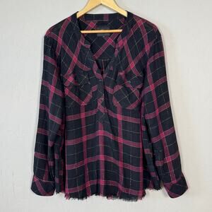 Rails Women's Size XL Linen Blend Popover Over Tartan Tunic Top Raw Hem Casual