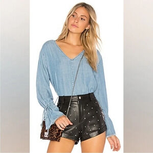 Rails Zimi Linen Blend Denim Blouse Chambray Size Large
