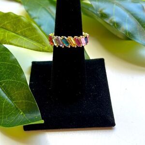 A beautiful rhinestone ring with rainbow stones slanted in the ring. This is brand new boutique product. Size 7 only.