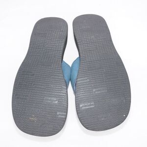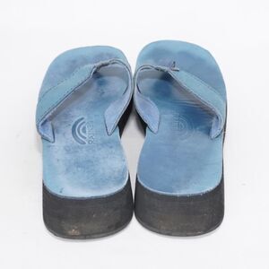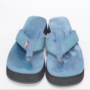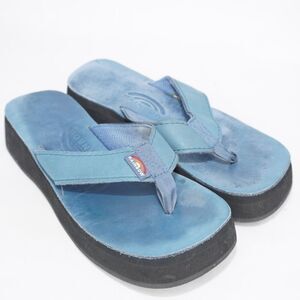 Rainbow Thick Strap Blue Platform Sandals, Size 9
