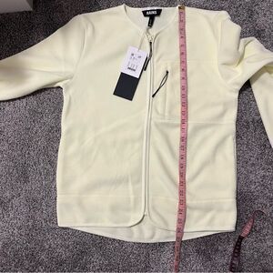 Fleece Jacket features an O-neck collar, chest pocket with concealed zip, and concealed side pockets. The look is finished with elasticated binding details. The design is cut from a soft double-sided micro fleece, developed to be tactile with a clean aesthetic, and breathable.