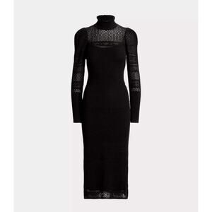 Ralph Lauren Collection Midi Dress Lace Puff Black Sweater Cashmere Silk L 12 14