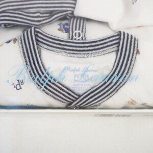 Ralph Lauren Polo Baby Onesie, Bib & Beanie Gift Set in White/Blue Size 9M - NWT
