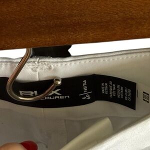 These Ralph Lauren white ankle-length pants offer a tailored fit with a clean, straight-leg cut. Crafted from a structured fabric, they provide a polished silhouette perfect for versatile styling.