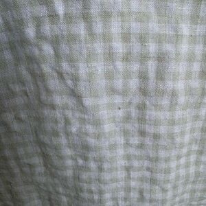 Preloved 100% linen green and white plaid sleeveless shirt. Please look at all photos as it has some minor spots on back. Message me for any questions.