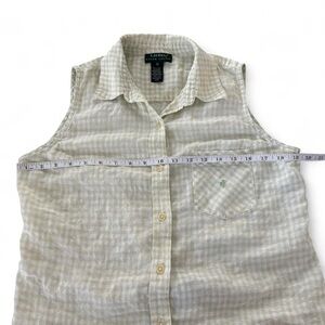 Ralph Lauren White and Green 100% Linen Sleeveless Button Down Shirt