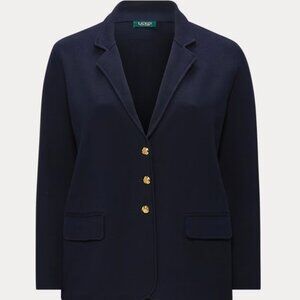 Ralph Lauren Women's Plus 1X Combed Cotton Single-Breasted Knit Blazer NAVY BLUE