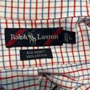 Ralph Lauren size Large Big Shirt 100% cotton red white and blue button down.
