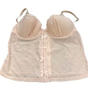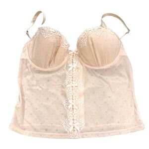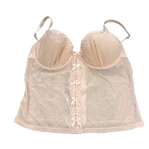 Rampage Sexy Lacy Pink Underwire Sheer Corset Bra Top with Bows; 36C NWOT