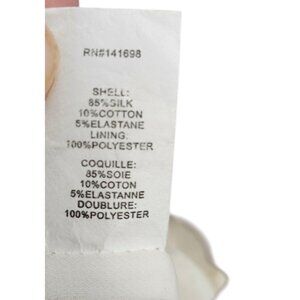 The Ramy Brook Cream Ruffle Peasant Blouse in size M is a stylish and versatile top perfect for casual occasions. Made from luxurious silk material, this blouse features puff sleeves and a ruffle accent, adding a touch of boho chic to your outfit. The ivory color and solid pattern make it easy to mix and match with different bottoms for a trendy look. With a dry clean only care instruction, this blouse is a must-have for your summer, fall, or spring wardrobe.