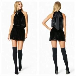 Ramy Brook Paige Velvet Dress Black Mini Velour Sleeveless Mock Neck Tie…