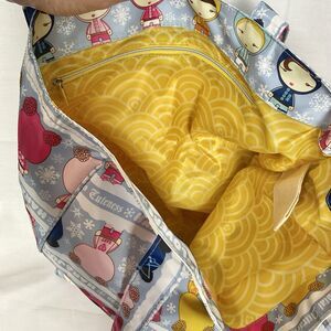 This rare Harajuku Lovers Tokyo Tote bag is a must-have for any fan of the brand. Featuring the colorful Snowbunny pattern, this large tote is perfect for carrying all your essentials. Made from a lightweight polyester, this bag is lined in a colorful yellow pattern and has an open top.