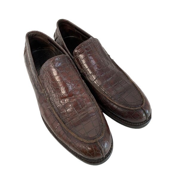 Rare Men’s Donald J. Pliner 8.5 Croc emboss leather loafer Brown GUC Italy 7323