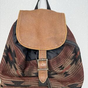 Rare Vintage 90s Jansport Made in USA Leather Bottom Backpack Aztec Tribal Print