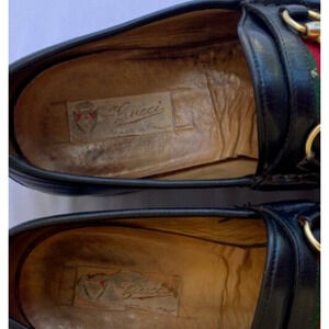 Rare Vintage GUCCI HORSE BIT LOAFER SHOES BLACK ITALY 42 US 9. See photos for condition. Bottoms have been replaced.