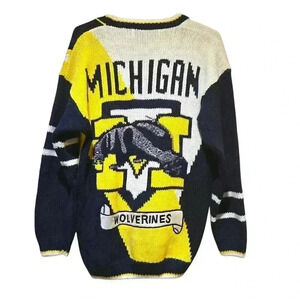Rare Vintage Knit Belle Pointe Michigan Wolverines Cardigan Size M
