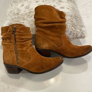 Reba Boot Suede Slouch Western Cowgirl Saddle Cognac Brown Rust Bootie Size 7.5