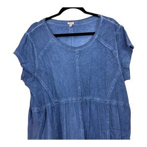 Reba Shift Dress Size Extra Large Blue Cotton Cap Short Sleeves Scoop Neck