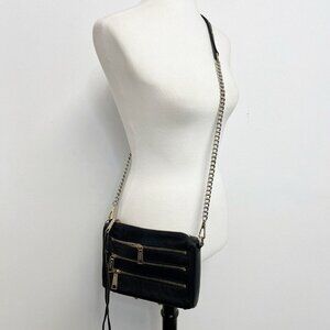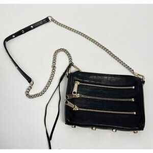 Rebecca Minkoff 4 Zip Cross-body Leather Bag, Black Leather Silver Hardware