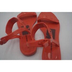 Pre-owned without tags or box Rebecca Minkoff Jana Studded Jelly Ankle Strap Sandal Salmon Color Size 9.5/40. The Rebecca Minkoff Jana Studded Jelly Sandal in salmon is a stylish and practical choice for warm-weather wear. Crafted from durable rubber, these sandals feature pyramid-shaped studs across the straps, adding a touch of edgy flair. The vibrant salmon hue offers a fun pop of color, while the adjustable ankle strap ensures a secure fit. The flat sole provides comfort for all-day wear, making them perfect for beach outings, poolside lounging, or casual strolls.