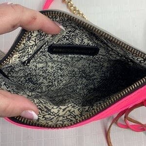 Rebecca Minkoff Mini MAC Bright Barbie pink and grey color block Crossbody Bag! Leather crossbody with gold tone hardware. This purse is much roomier than it appears and comfortably fits a wallet, phone, keys and other essentials! Gently used,