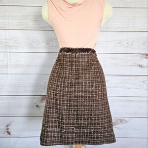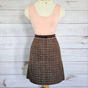 Rebecca Taylor Tweed and Bow Mini Skirt in Brown and Pink Plaid Size 2