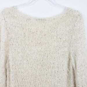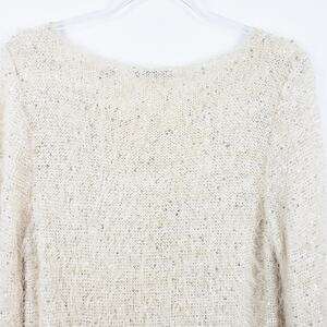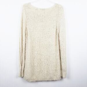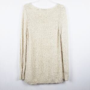 Red - Ivory Sparkle Eyelash Knit Sweater Crew neck Longer Length Size Large
