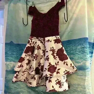 What a gorgeous red and white floral dress. It is going to be absolutely beautiful for this winter. The red maroon color with the fabric choices makes this a great elegant choice.