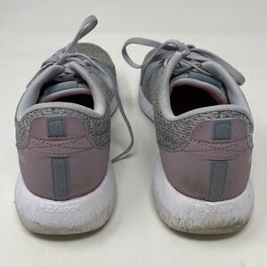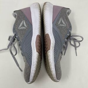 Great pair of pre-owned gray with a lilac heel, super comfortable lace up sneakers.