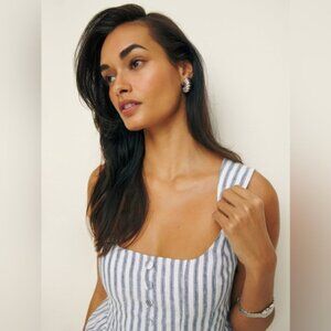Reformation Evie Linen Top in Antibes Stripe Blue White Stripes | US 0 UK 4